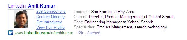 Se um site de comércio eletrônico, por exemplo, resolver implementar microformats nas páginas de seus produtos, o Yahoo irá poder extrair o preço, nome do produto, características, entre outros detalhes diretamente da página e guardar essas informações. Além disso, com a plataforma Open Search será possível criar algo parecido com o visto acima sobre o perfil no LinkdIn. Ao procurar por “Televisões de LCD”, por exemplo, o Yahoo pode mostrar informações sobre o produto junto com o link para a página do produto.