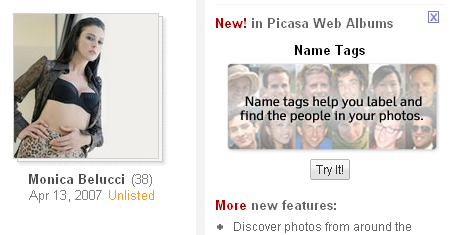 Eu senti falta na verdade foi do reconhecimento de face no Picasa 3, o software. Na versão 3 já existe a opção “exibir somente imagens com rostos”. Mas não um reconhecimento ainda, como o Web Albuns. Será que o Google não planeja a ferramenta no soft para breve? Já achei inclusive um monte de pedidos para isso no site do Picasa (Wish lists). Aguardamos!