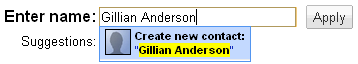 Para a minha tristeza, a Gillian Anderson não está entre meus contatos. Digitei o nome dela e cliquei em “apply”.