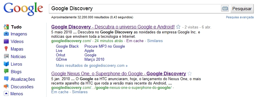 - Na frente do link para o site, além da opção Cache, foi incluída a opção Similar, que leva o usuário a sites que falam sobre o mesmo assunto.
