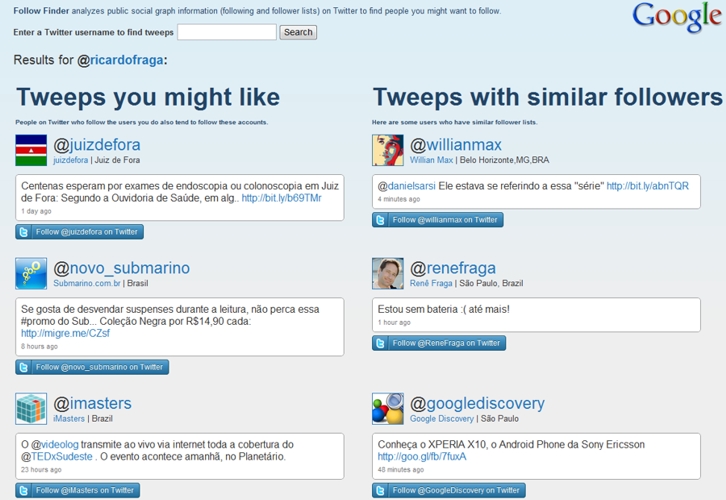 Tentando auxiliar os usuários nesta tarefa, o Google lançou, recentemente, o Follow Finder.