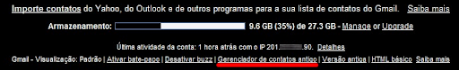 Por último, o sistema de gerenciamento de contatos foi repaginado. Ao clicar na opção Contatos, logo abaixo de E-mail, a opção de inclusão de um novo contato é aberta do lado direito. No lugar dos marcadores, aparecem os grupos de contatos criados pelo usuário, além das opções Meus contatos, Mais acessados e Outros contatos. Logo abaixo, também há as opções Novo grupo e Importar contatos.