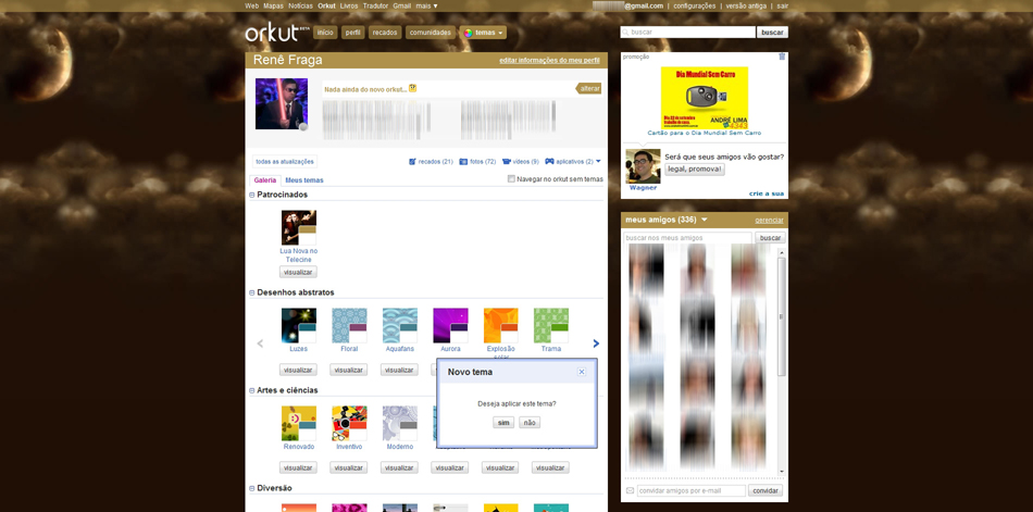 Para ativá-lo, o usuário deve acessar a opção Temas, no menu superior, e selecionar a opção mostrar mais. Depois, basta selecionar o tema patrocinado e clicar em Sim na pergunta Deseja aplicar este tema?.