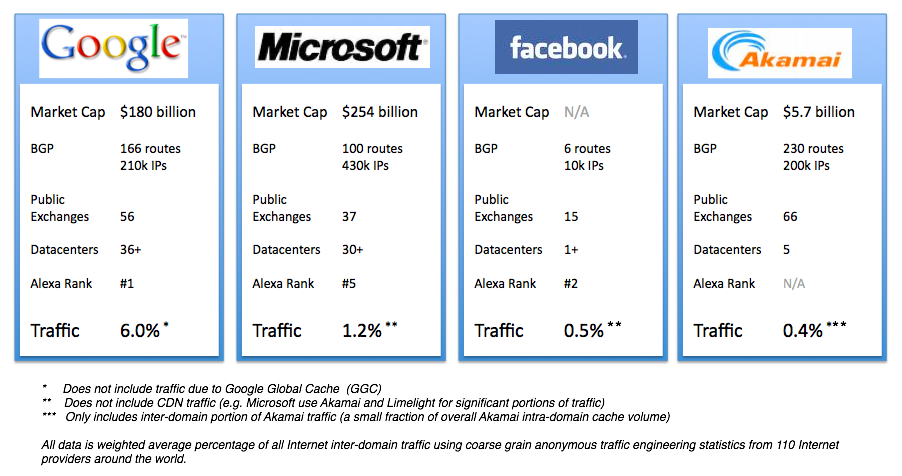De acordo com a companhia digital Arbor Networks, a gigante de Mountain View atingiu recentemente a marca de 6,4% de todo o tráfego mundial de dados. Para que você tenha uma noção do crescimento deste número, há três anos o Google apresentava uma participação de apenas 1%.