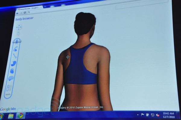 Ontem, enquanto a gigante de Mountain View demonstrava as próximas novidades do Google Chrome, uma apresentação usando WebGL revelou uma prévia do que poderá ser um novo produto do Google Labs: o Google Body Browser.
