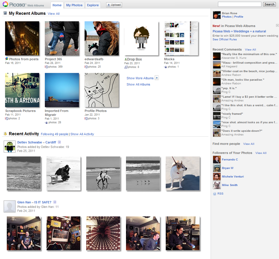 Ao acessar o Picasa web, o usuário sempre tinha acesso somente aos seus álbuns no serviço. Para torná-lo mais social, o Google começou a exibir, na página de abertura, fotos de sua família e amigos compartilhadas com você, juntamente com algumas fotos públicas da comunidade Picasa.