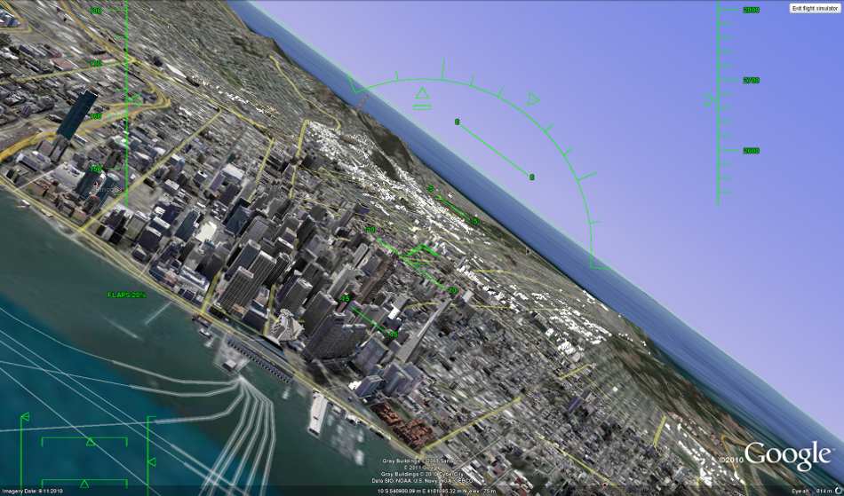 Uma vez selecionado, o simulador exibirá uma tela na qual os usuários poderão escolher entre dois tipos de aeronaves (um caça F-16 e um teco-teco SR22). Ainda na mesma tela, os usuários deverão selecionar de onde o voo partirá. Pode-se definir a localização atual do Google Earth, ou selecionar um dos 28 aeroportos disponíveis no sistema.