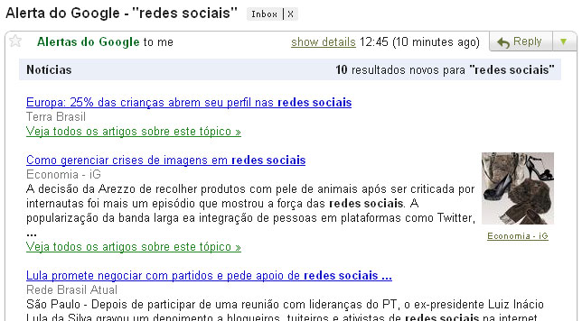 - Pronto! Você logo receberá o seu primeiro e-mail do Google Alerts.