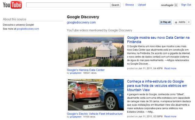 “Através da indexação dos feeds de blogs que tenham incorporado vídeos, criamos páginas dedicadas que destacam seus vídeos. Isto significa que agora há um lugar no YouTube para encontrar vídeos mencionados em seus blogs favoritos e sites”, explicou o blog do YouTube.