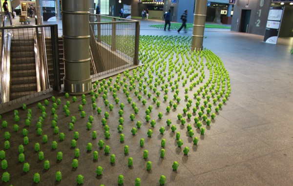 Para a campanha dos novos celulares Android no mercado belga, a HTC fez uma invasão com um exército de mascotes do Droidinho, carinhosamente chamado assim por nós do GD.