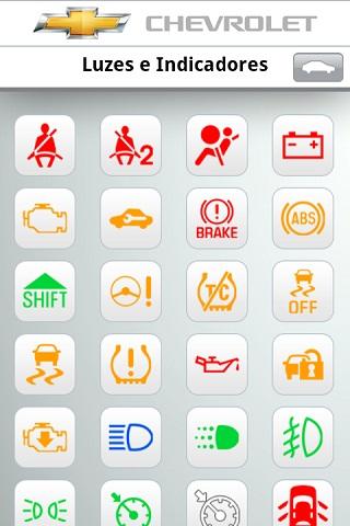 O MeuChevrolet também ajuda a marcar o local de estacionamento (usando GPS) e auxilia os motoristas a descobrir o significado de luzes e indicadores no painel. O utilizador também pode ter acesso ao manual do seu veículo a qualquer momento.