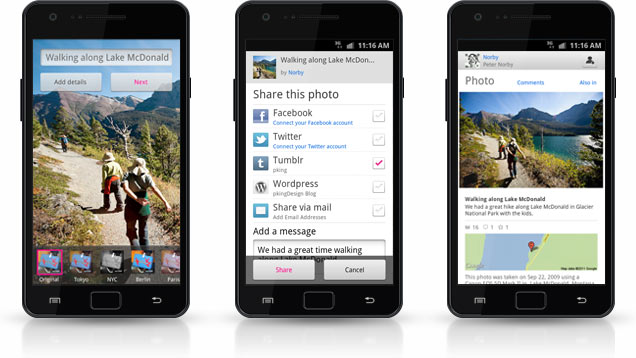 “Nosso novo aplicativo para Android permite que você tire fotos, aprimore-as com filtros e envie-as rapidamente para o Flickr, Facebook, Twitter e qualquer outro site no qual você compartilhe fotos.”, explicou a empresa.
