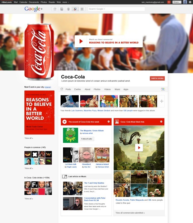 “Há algumas semanas, o Mashable entrou em contato com algumas agências de publicidade e pediu para que elas imaginassem como as páginas para empresas do Google+ poderiam ter suas plataformas reformuladas”, explicou o blogueiro Todd Wasserman.