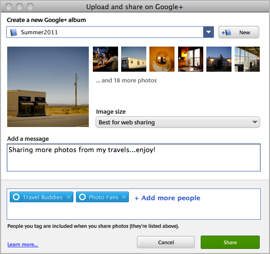 “Use o Picasa 3.9 para compartilhar diretamente com os círculos que você criou no Google+. As pessoas nos círculos verão suas fotos e seus vídeos no stream do Google+ delas”, explicou Chandrashekar Raghavan, Gerente de Produto.