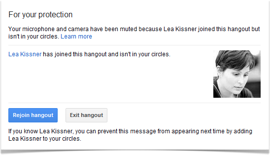 – Trava que proíbe o adolecente de falar com um desconhecido nos Hangouts.