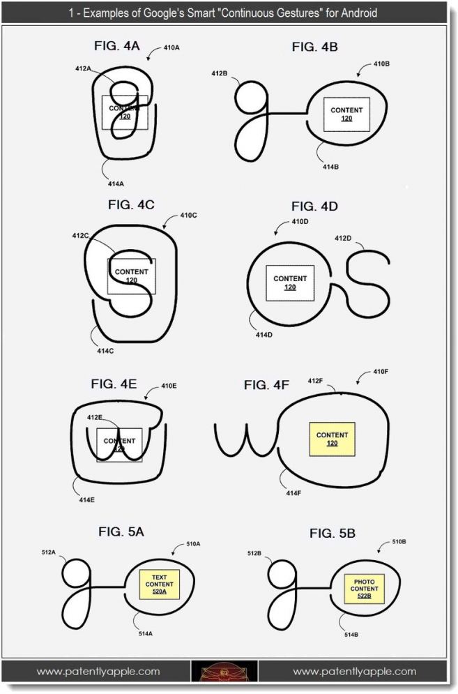 Observado pelo PatentlyApple, um site focado em desvendar novas patentes da Maça, o Google inventou um novo gesto para futuros dispositivos com Android que incorpora várias formas da letra “g”.
