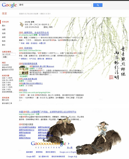 O Google chinês está exibindo um página especial ao pesquisar por “Qingming”, um festival local que é similar ao Dia dos Finados.