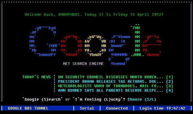 Para testar o Google BBS Terminal, basta clicar neste link.