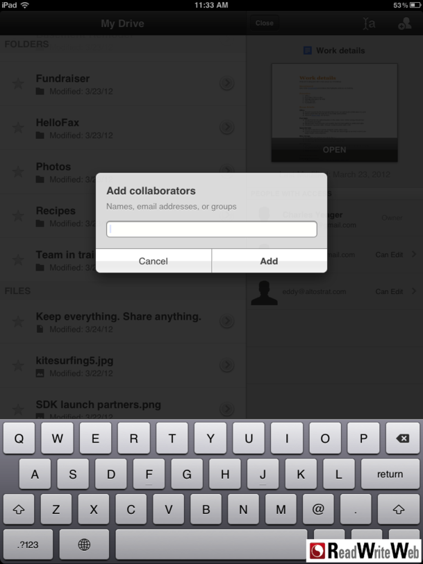 Embora o Google não tenha revelado detalhes do Google Drive para iPhone e iPad (além da informação de lançamento para as próximas semanas), o site ReadWriteWeb obteve algumas imagens que mostram algumas capturas de tela do aplicativo que ainda está em fase final de desenvolvimento.