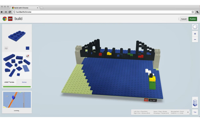 “Fizemos os tijolos com WebGL, que permitem poderosos gráficos 3D no navegador e demonstra o limite do atual desempenho gráfico. Em seguida, misturamos o Google Maps, assim você pode colocar a sua criação em um mundo de LEGO ao lado de todos os outros”.