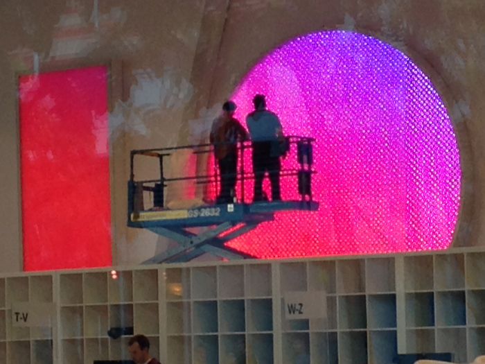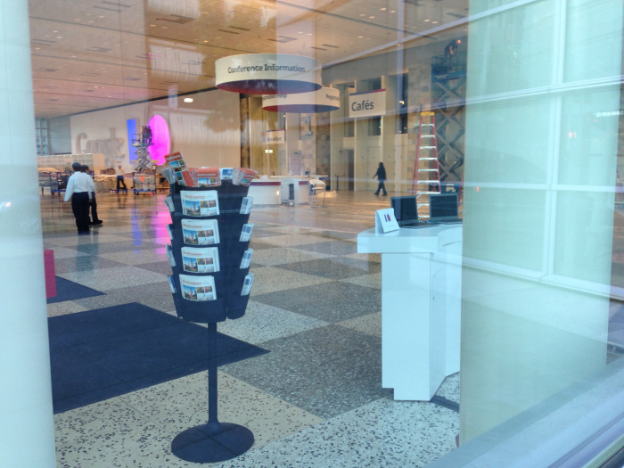 San Francisco, Califórnia: Funcionários do Google correm para deixar o Moscone West pronto para o Google I/O 2013.