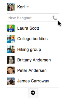 Para fazer ligações pelo Hangouts, basta clicar sobre o ícone de telefone no Gmail ou selecionar “call a phone” no Google+ ou extensão do Hangout para Chrome.