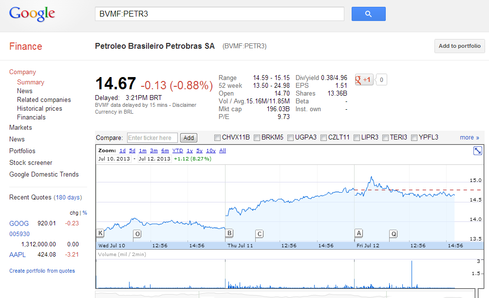 Com esta novidade, o Google Finance passa a acompanhar mais de 40 bolsas de valores de todo o mundo, além dos dados de fundos mútuos, índices e moedas.