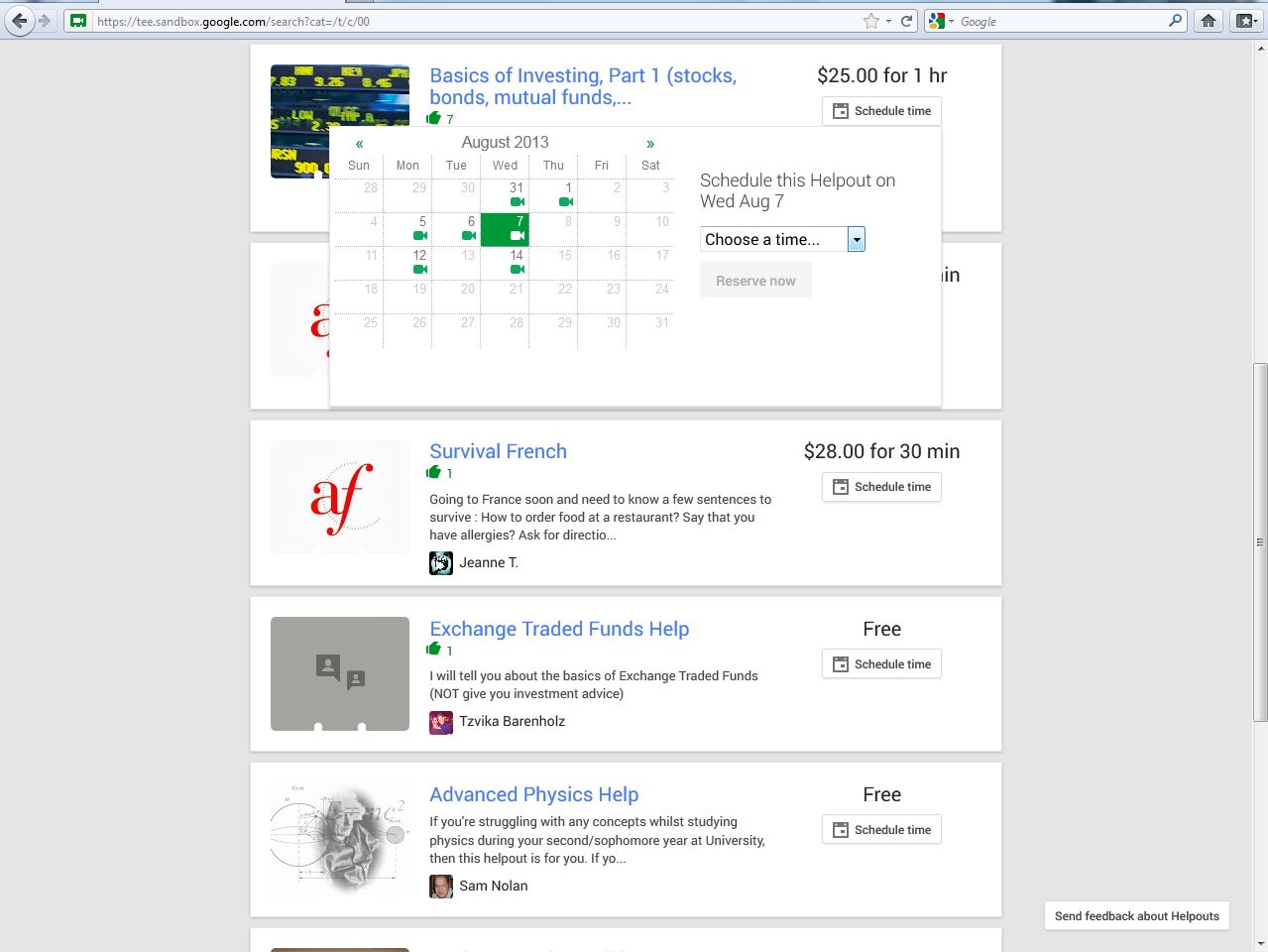 Entre as telas compartilhadas pelo blog – reproduzidas abaixo – os Helpouts podem variar de gratuitos até US$ 100. A ajuda instantânea (ou aulas agendadas) podem apresentar limitações de tempo, assim como na vida real.