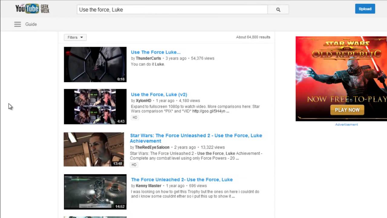 Para celebrar a Geek Week, o Google criou diversos easter eggs que podem ser explorados pelos usuários nas páginas do YouTube. Nossos colegas do Google Operating System encontraram alguns deles: