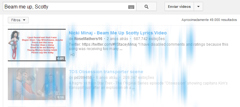 – Ao buscar por Beam me up, Scotty você pode ver um efeito de teletransporte de Star Trek.