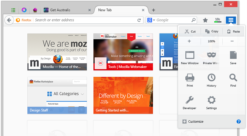 “Australis apresenta um design atualizado, guias simplificadas, novo menu com ícones maiores e melhores opções de personalização”, descreveu a Mozilla.