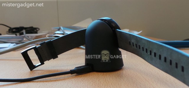 Seguindo o design atraente do smartwatch, o carregador foi projetado para colocar o relógio numa posição de fácil visualização, permitindo que os consumidores possam acompanhar o status da bateria.