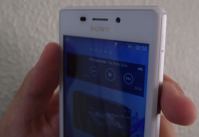 Testamos o celular M2 Aqua da série Xperia, um modelo médio da Sony que conta com um bom custo-benefício e a maioria dos recursos da fabricante. A ideia do aparelho é competir com smartphones baratos como o Moto G sem deixar de ter a excelência da série Xperia. A tela do celular é de 4,8 polegadas, o que não é tão grande para mãos femininas e nem para os homens que tiverem simpatia pelo gadget. Ele pesa 148 gramas e possui as dimensões 139,7 x 71,1 x 8,6 mm, o que não o coloca como um modelo inovador ou top de linha.