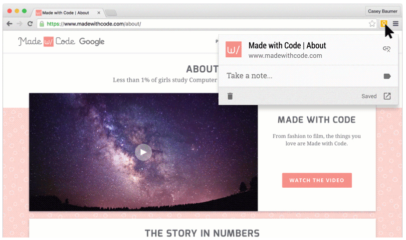 O Google disponibilizou uma nova extensão para Google Chrome que permite adicionar notas ao serviço do Google Kepp. De acordo com a empresa, a funcionalidade oferece um atalho para salvar informações da web, como páginas, fotos e textos.