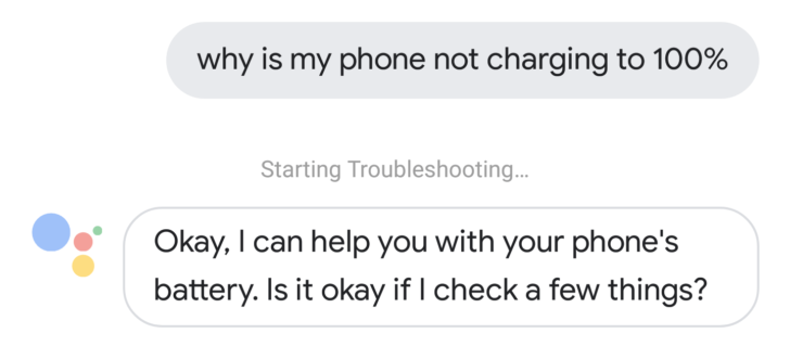 Segundo o Android Police, o Google Assistant poderá solucionar problemas da câmera ou conexões Bluetooth, incluindo uma verificação de integridade da bateria e garantir que nenhum aplicativo esteja drenando a vida útil da bateria.