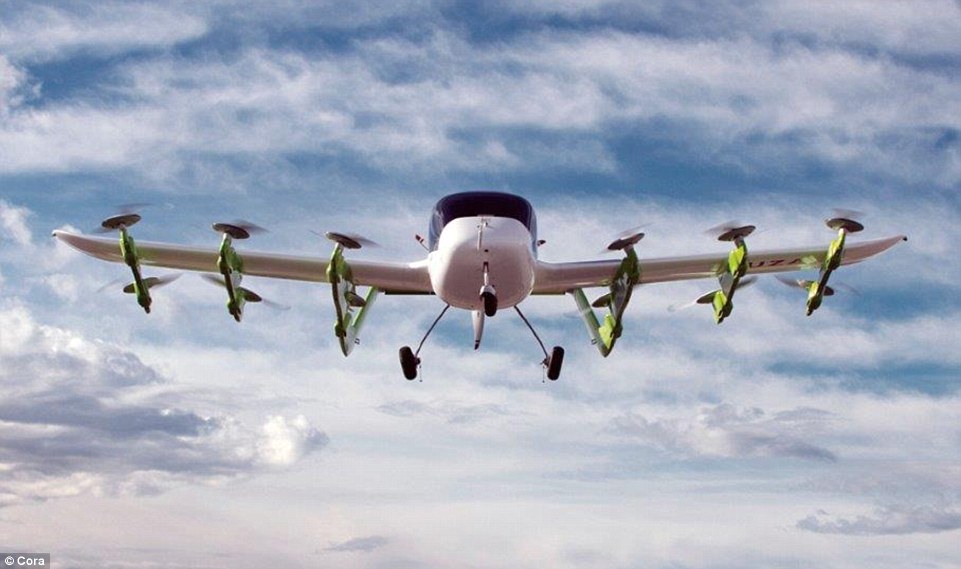 A startup de carros voadores do co-fundador do Google, Kitty Hawk, criou um avião de passageiros de duas pessoas chamado Cora.