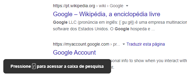 Pressionar “/” na página de resultados abrirá o campo de pesquisa e permitirá que você comece a digitar. Isso é especialmente útil para otimizar e refinar consultas.