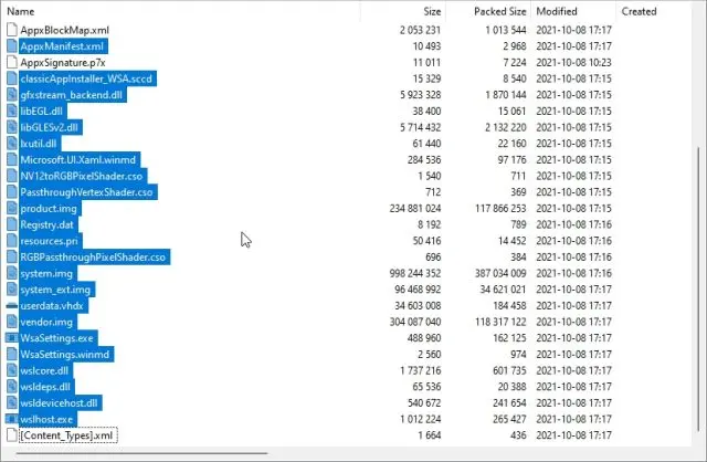 4. Em seguida, volte para a janela 7-Zip e copie tudo, exceto AppxMetadata, AppxBlockMap.xml, AppxSignature.p7x e [Content_Types.xml]. Você pode pressionar a tecla Ctrl e clicar nesses nomes de arquivo para desmarcá-los depois de selecionar todos eles por meio do atalho de teclado do Windows 11 Ctrl + A.