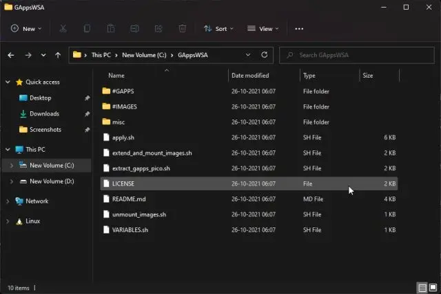 6. Agora, abra a pasta #IMAGES em GAppsWSA e copie todos os quatro arquivos IMG.