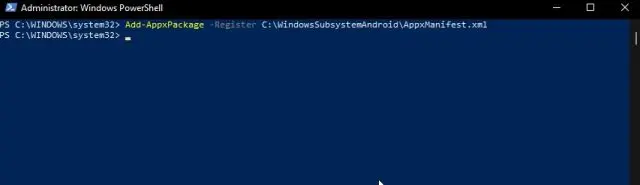 Add-AppxPackage -Register C:\WindowsSubsystemAndroid\AppxManifest.xml