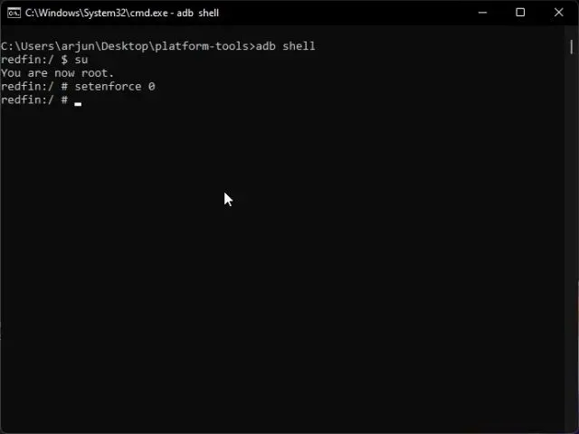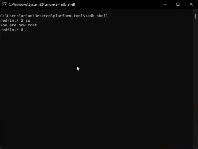9. Em seguida, execute os comandos abaixo um por um. Isso permitirá que você entre no modo Shell do WSA e conceda direitos de superusuário.