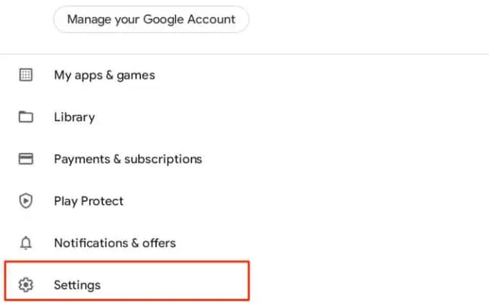 1. Abra a Google Play Store e clique em Configurações no canto superior direito do ícone do perfil.