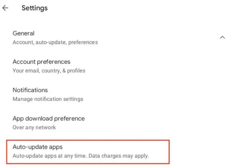 2. Expanda a seção Geral das Configurações e selecione a opção Atualizar aplicativos automaticamente .