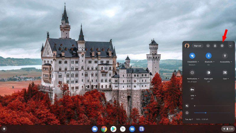 1. Clique na Hora no canto inferior direito da janela. Quando o painel Configurações rápidas aparecer como resultado desse comando, selecione Configurações (ícone de engrenagem) na linha superior do painel.