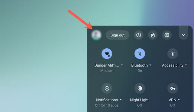 3. Clique na foto do perfil para encontrar todas as contas atualmente conectadas ao seu Chromebook. Você só verá sua conta na lista se nenhuma conta adicional for adicionada ao seu Chromebook.