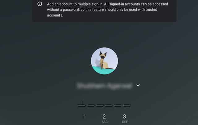5. Você receberá uma notificação na parte superior da tela informando que pode adicionar sua conta nas opções de login múltiplo para não precisar digitar uma senha para alternar entre as contas de login múltiplo. Todas as contas em vários recursos de login estão qualificadas para serem acessadas rapidamente sem inserir uma senha.