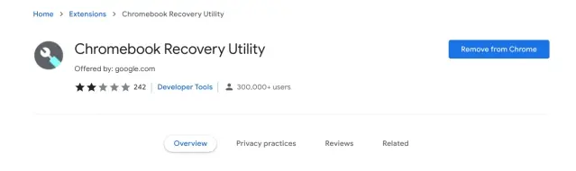 1. Primeiro, vá em frente e instale a extensão Chromebook Recovery Utility do Chrome usando o link aqui . É uma extensão que permitirá que você atualize a compilação do Chrome OS Flex em sua unidade USB.