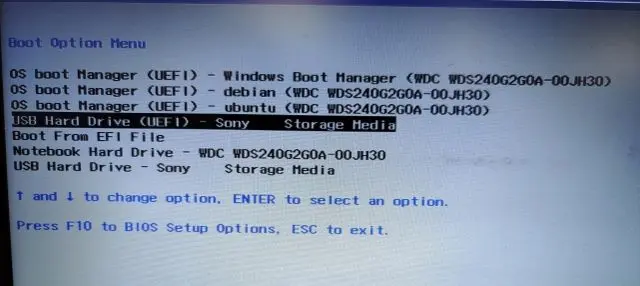 2. Na página de seleção de inicialização, selecione sua unidade USB usando as teclas de seta e pressione Enter.