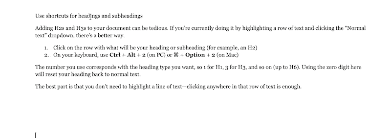 Adicionar H2s e H3s ao seu documento pode ser tedioso. Se você estiver fazendo isso destacando uma linha de texto e clicando no menu suspenso “Texto normal”, há uma maneira melhor.