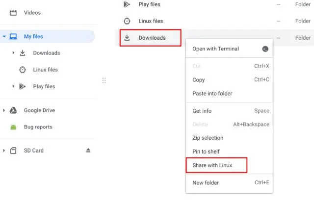 Compartilhar arquivos entre o Chrome OS e o Linux